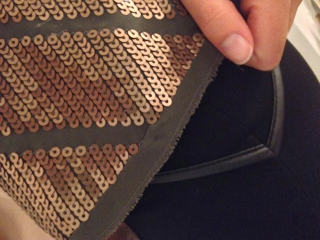 I really love how these pieces work together... there is a fabulous mixture of textures going on here! Obviously the sequins and the ever-so-slight metallic nature to the blazer, but these ponte pants (SO comfy, btw) have a little leather detailing on them which adds interest. Complete with a gold chain necklace and patent pumps like I did, or add a pop of color in the heels! So gorgeous! I'll be keeping this outfit on my mind for the next time Kyle and I go out for a hot date ;).